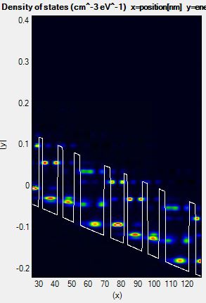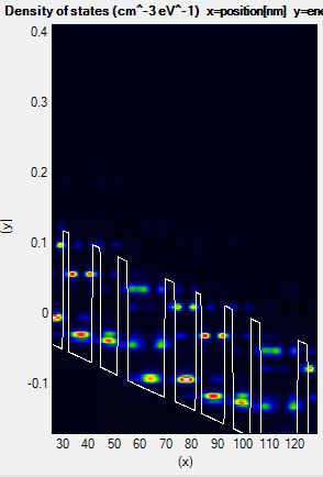 Figure 2.3.4.1 Density of states of a QCL calculated with a non-ideal energy range.