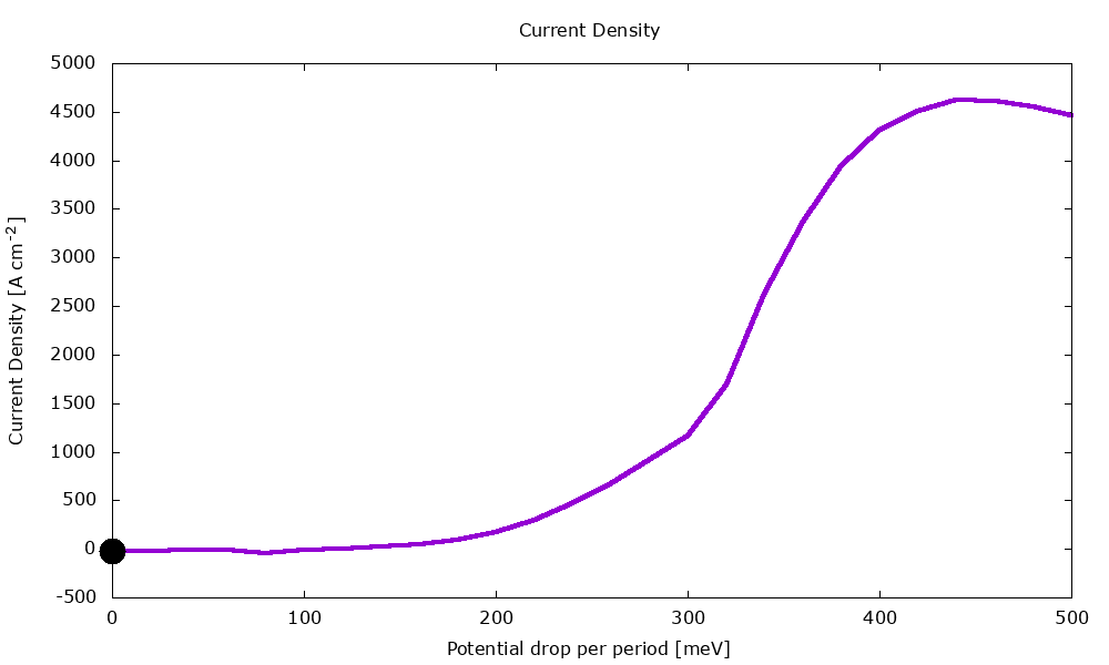 An example of application is illustrated below with the calculation of current-voltage characteristics in a QCL.