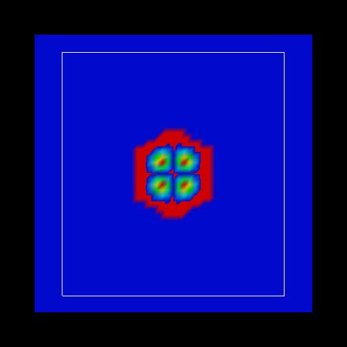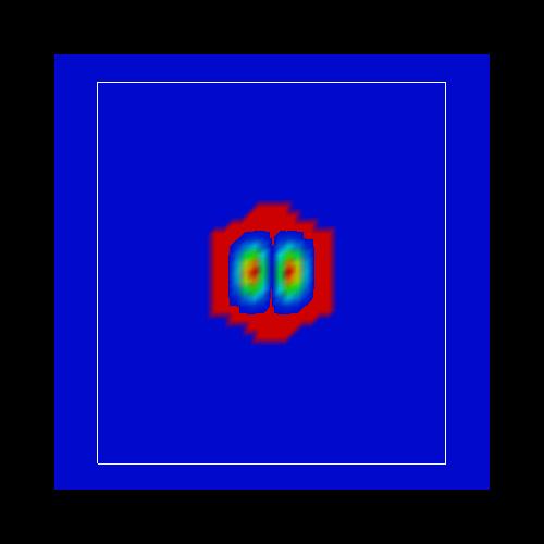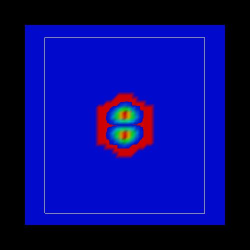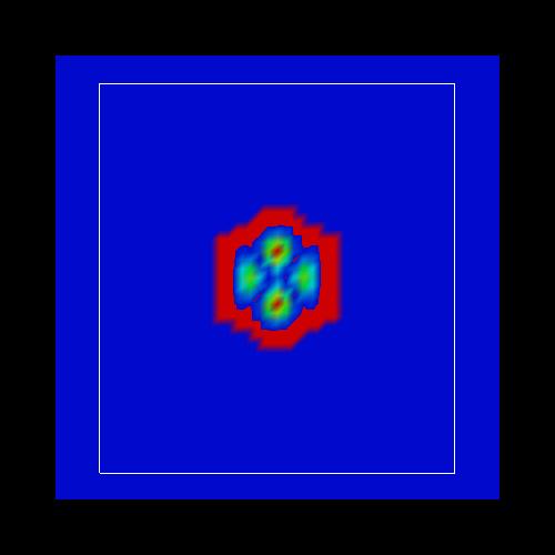 Figure 3.20.31.15 Probability density \(\Psi^2\) of the \(1^\mathrm{st}\) electron state in the QD.