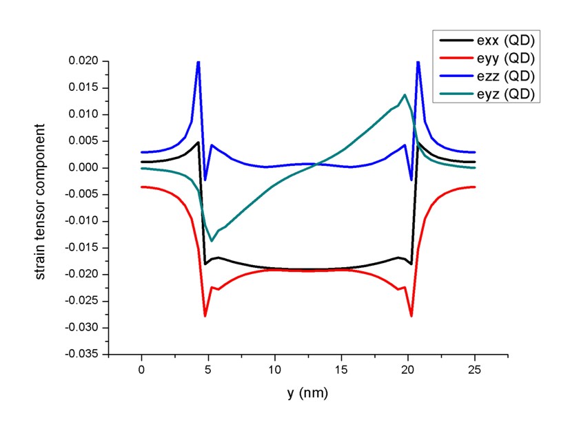 Figure 3.20.31.8 Strain tensor along the y-axis through the quantum dot (QD).
