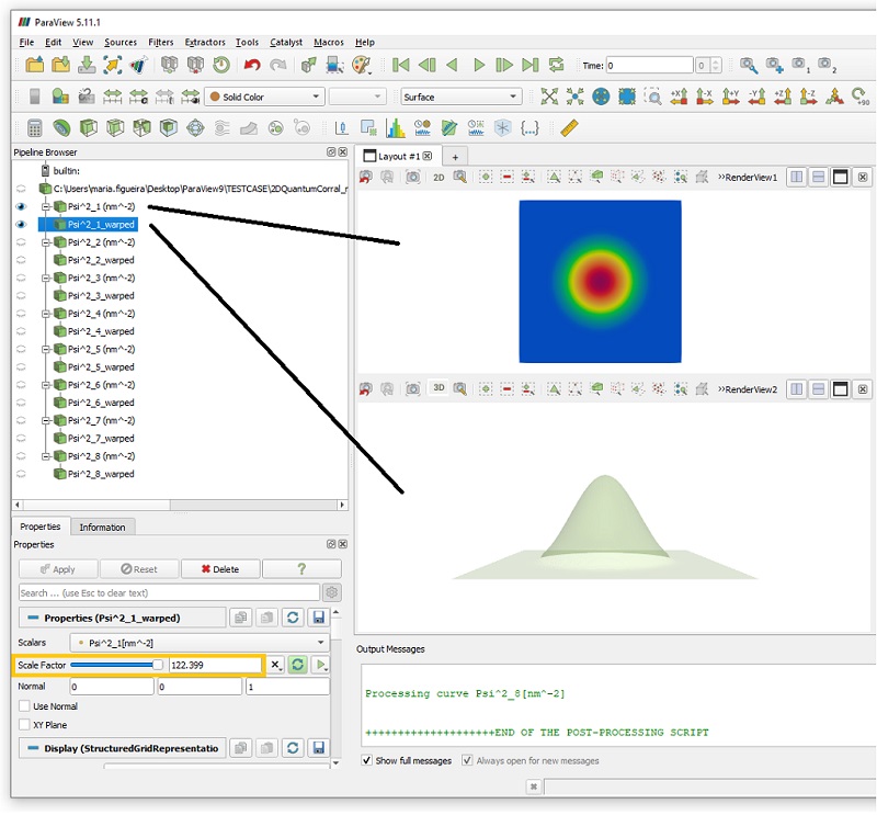 After the message END OF THE POST-PROCESSING SCRIPT is displayed in ParaView, we will observe that two group