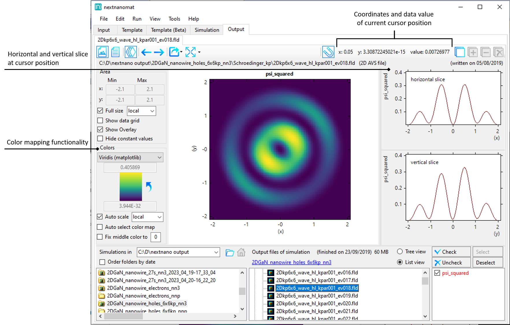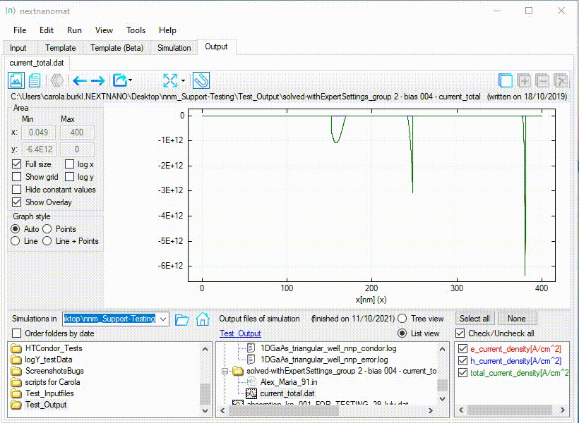 The workflow manager nextnanomat can display the following output formats:
