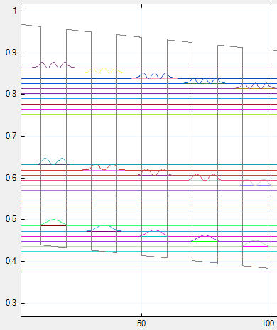 This feature hides any parts of the curves where the value does not change within 5 grid points (two to the left and right). Its purpose is for visualizing wave functions and probability densities on top of band edges. The constant part which represents the energy level will be hidden. This allows to focus on the changing parts as well as for the underlying band edge to be seen. The influence of this feature can be seen in Figure 23 and Figure 24.